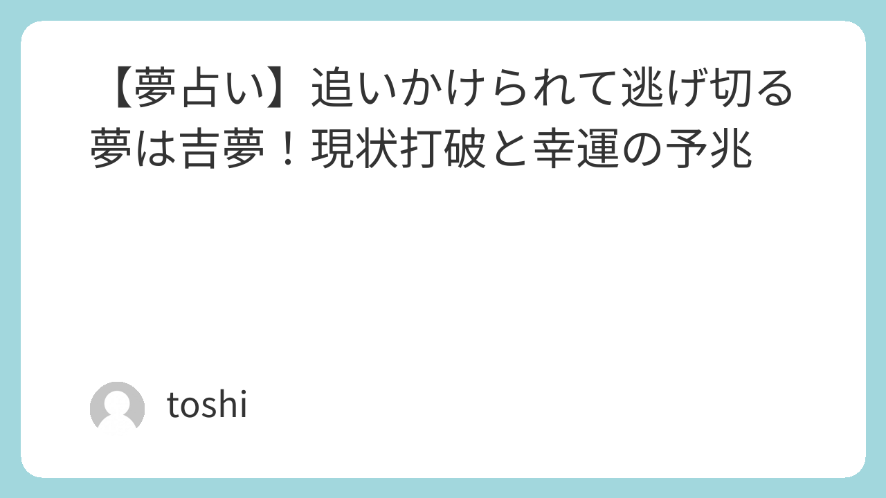 けれど、安心してください。高次元からのメッセージである夢占いにおいて、「追いかけられて逃げ切る夢」は、あなたの魂が困難に打ち勝つことを知らせる強力な吉夢です。